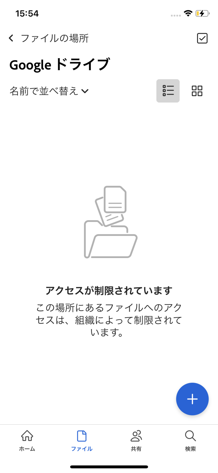 プロファイル適用後は以下の通り、Google ドライブ へのアクセスが制限されます。